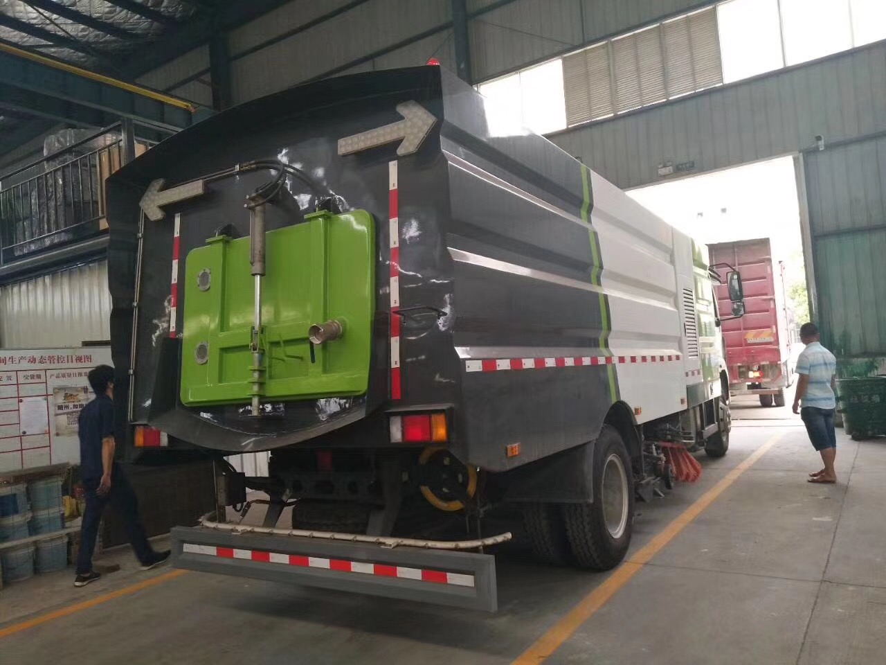 副发动机采用《康明斯170马力》,自动离合器驱动风机和高压水泵,有效减少风机启动和停止时对发动机的冲击,低噪音,低油耗量和节省成本等优点。采用洛阳北玻品牌,大功率耐磨免维护离心风机,无嗓音,效率高风量大,使用寿命长。高压水泵采用合资国际知名德国品孚,T7012IR型柱塞柱,压力高,高压力可达到16MPa。清水箱充分利用车载空间,容积达到9个方,内置水位报警器。垃圾箱采用双层内胆不锈钢结构,内部加装过滤网板,有效地防止树叶,塑料袋之类的轻飘物堵塞风口及灰尘排出,内置污水报警系统,可通过后门处污水阀方便的将污水排出下水道,大限度的利用了垃圾箱装载垃圾的空间,厢体采用倾翻卸料,带高压冲洗自洁装置。